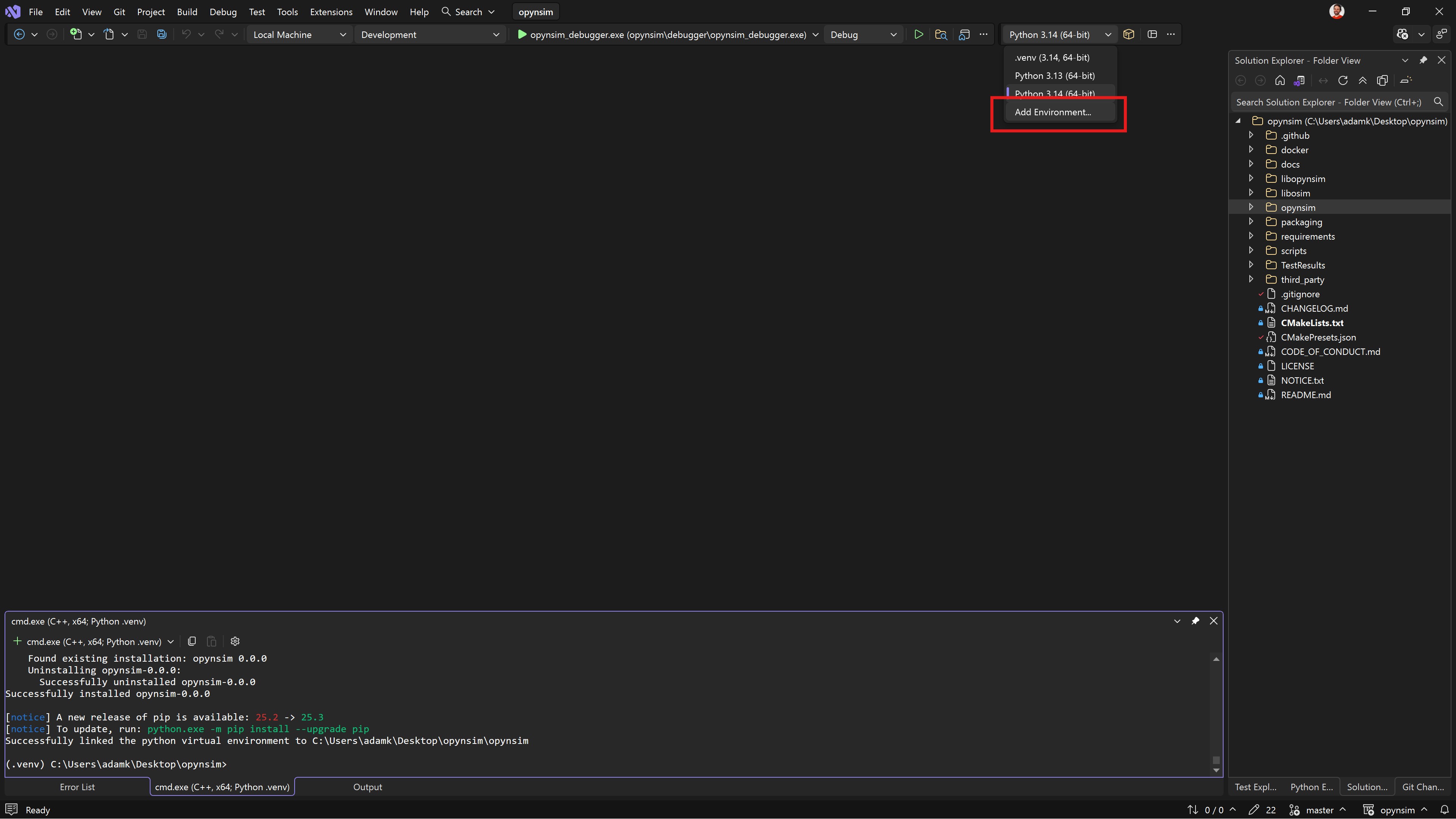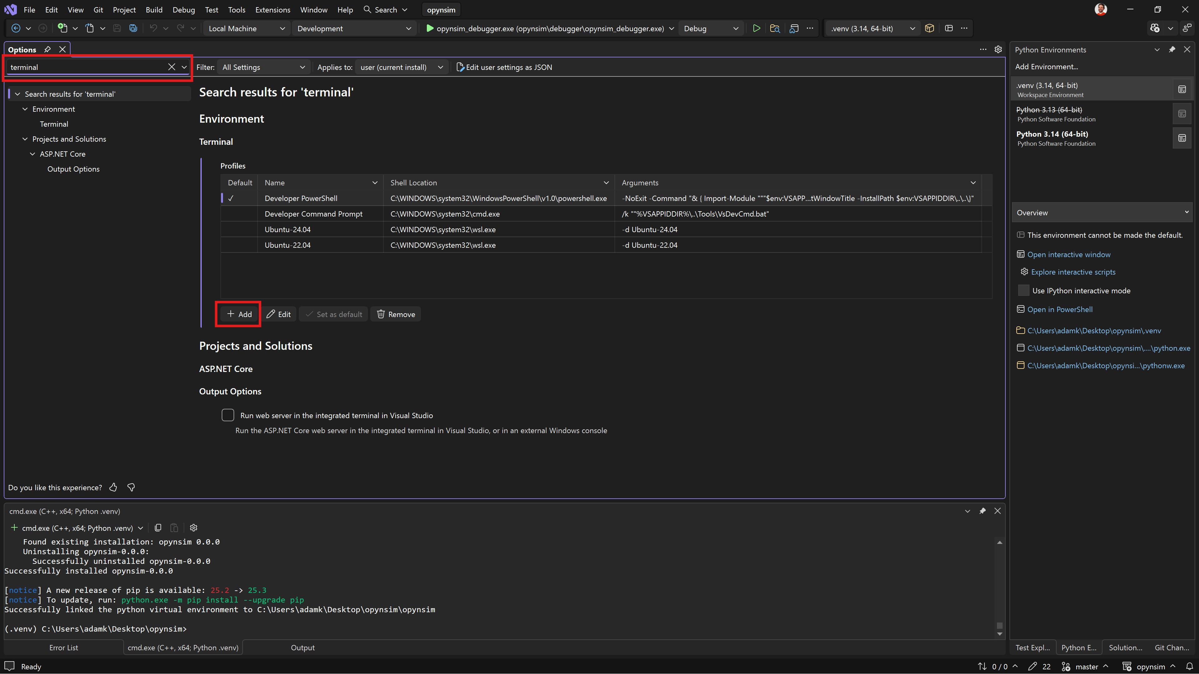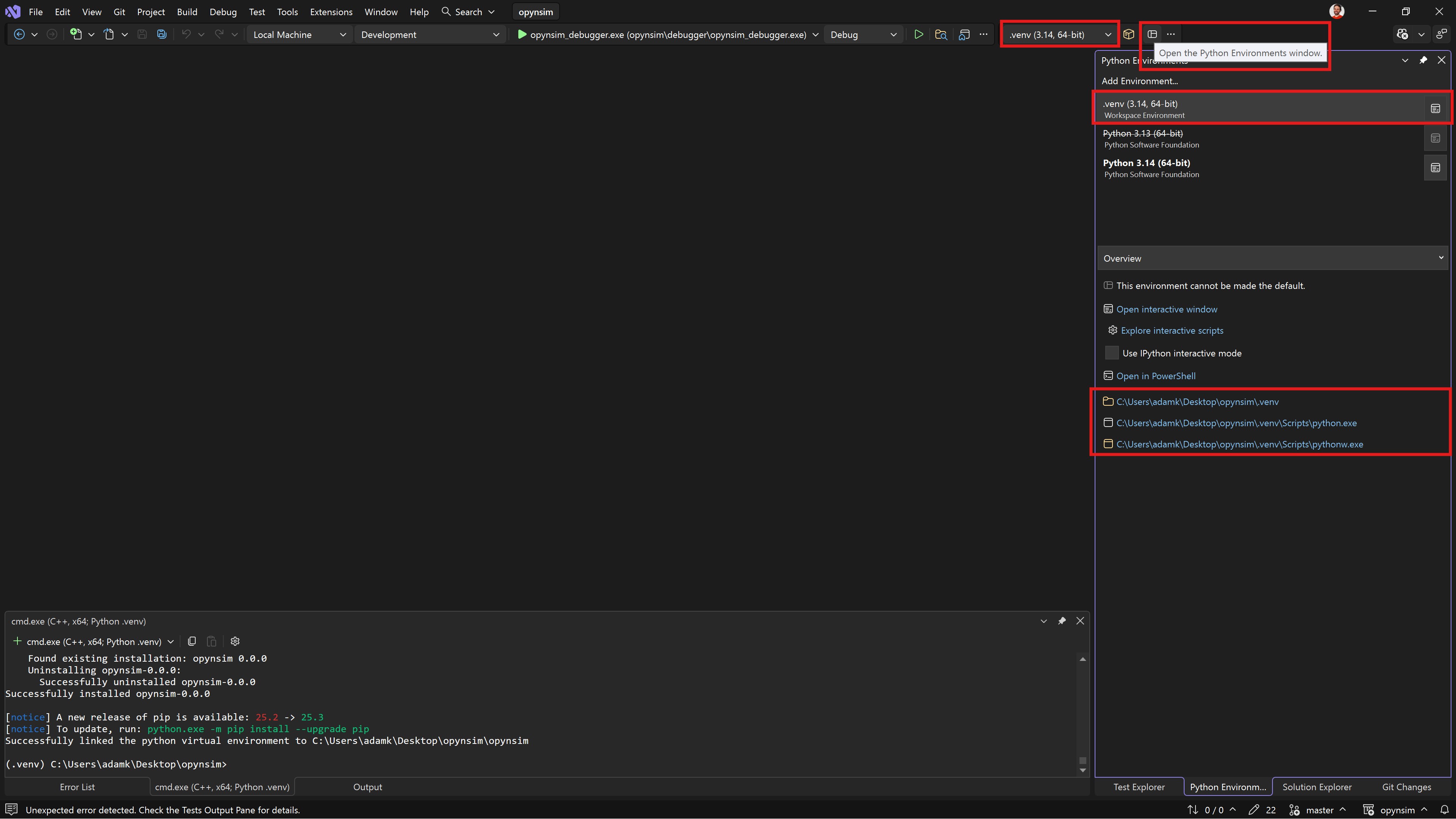 opynsim_debugger.exebecause those virtual environments aren’t on the PATH for Visual Studio.