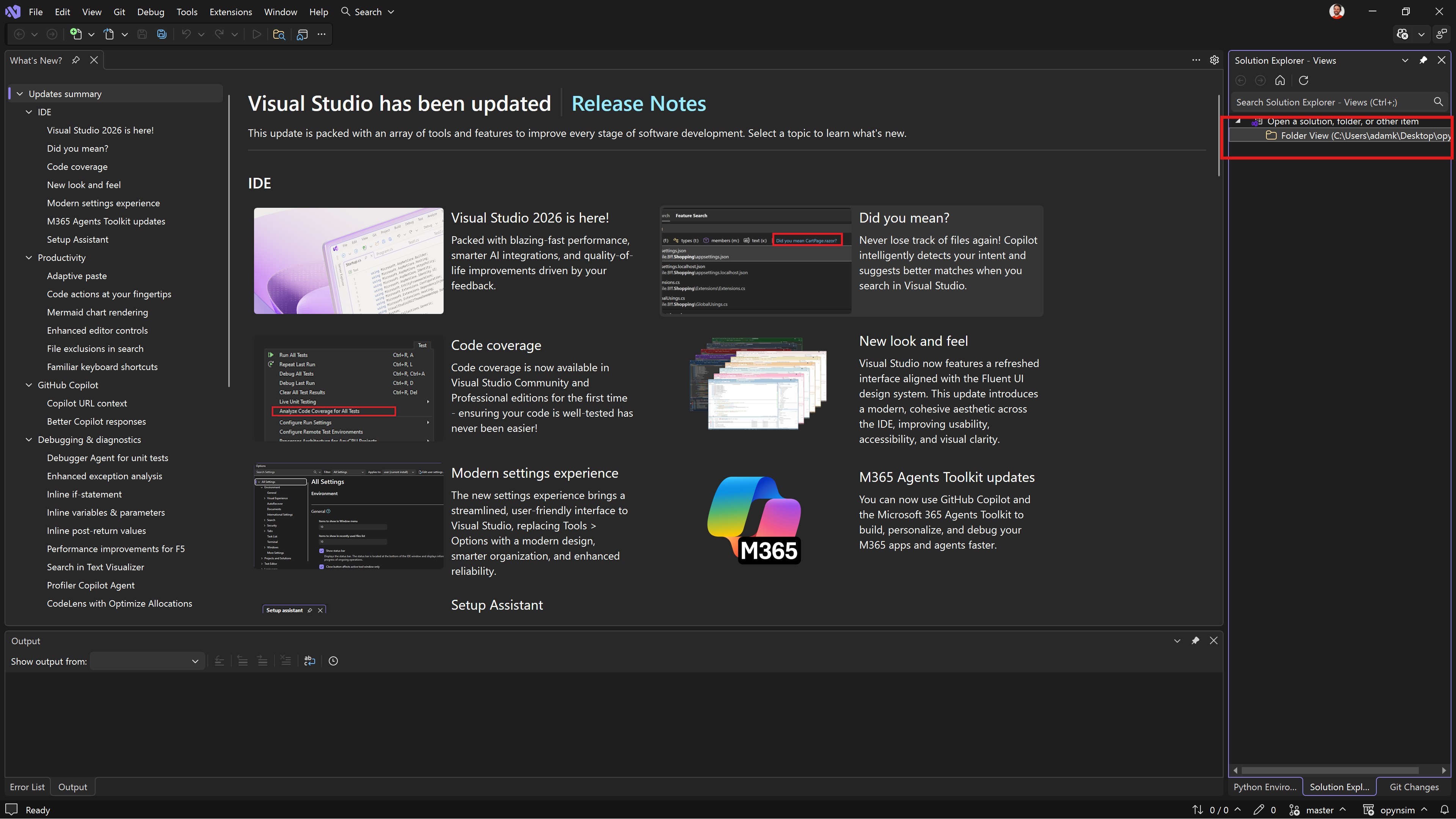 Fig. 2.7 Once the repository is cloned, Visual Studio will then open and show the “What’s New” tab